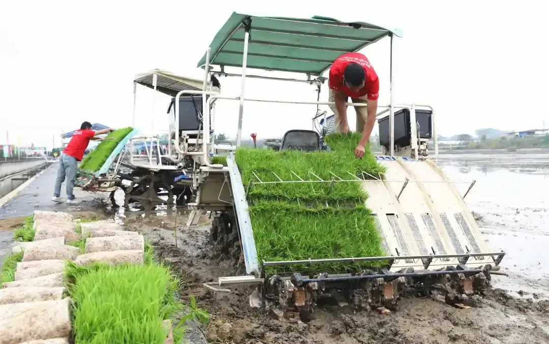 △农户在插秧机装载秧苗,在农机的匡助下,大大提升了春耕效果。肇庆市融媒体中心记者 朱梦丹 摄